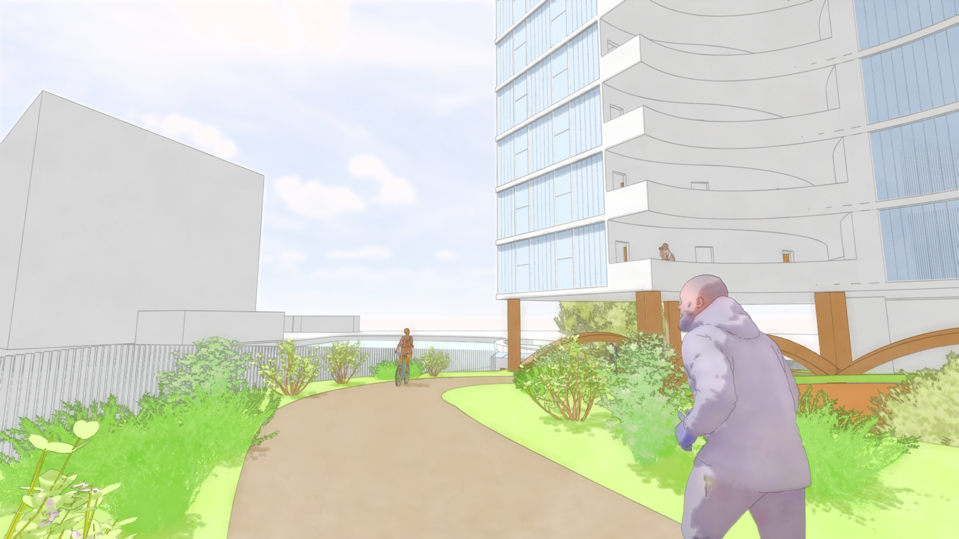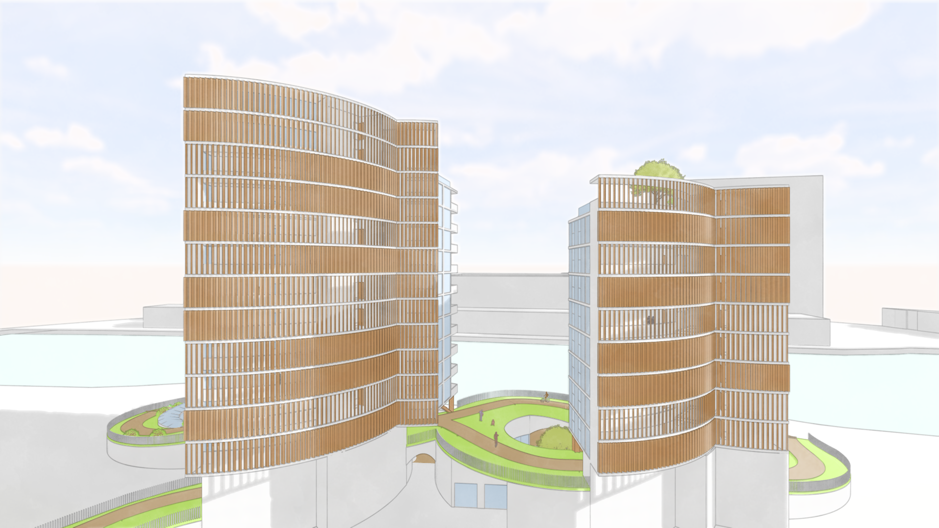 The design introduces a hybrid precinct where living, working, resting, and gathering are seamlessly integrated. It is a building that responds to people, place, and pattern, inspired by the movement of water, the gathering of people at attractor points, and the lightweight, tensile nature of natural structures. The design weaves together: